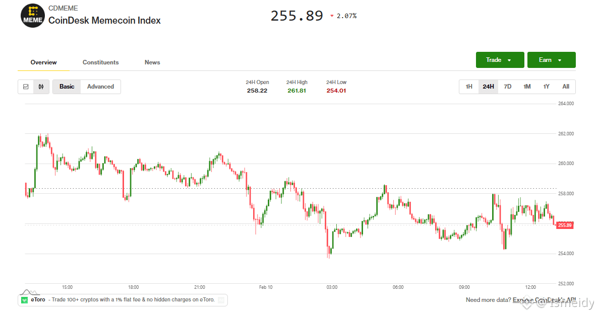 Comparing the #MEME sector: The CoinDesk #memecoin index (CDMEME) rose 2.07%, closing at 255.89 points. It's a red system, but the uninformed are unlikely to encounter anomalies.