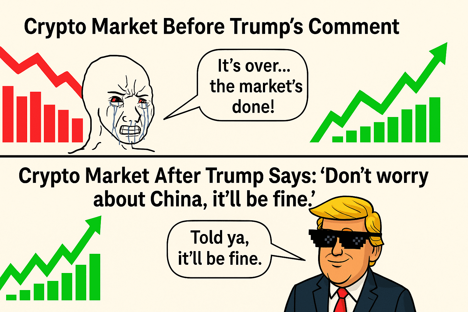 Crypto traders before Trump's speech: 😱📉 Crypto traders after Trump said, "Don't worry about China": 😎📈 In short... the entire market is bullish again. 😂 $BTC $ETH $BNB #crypto #TrumpEffect #MarketRebound #bitcoin #MEME