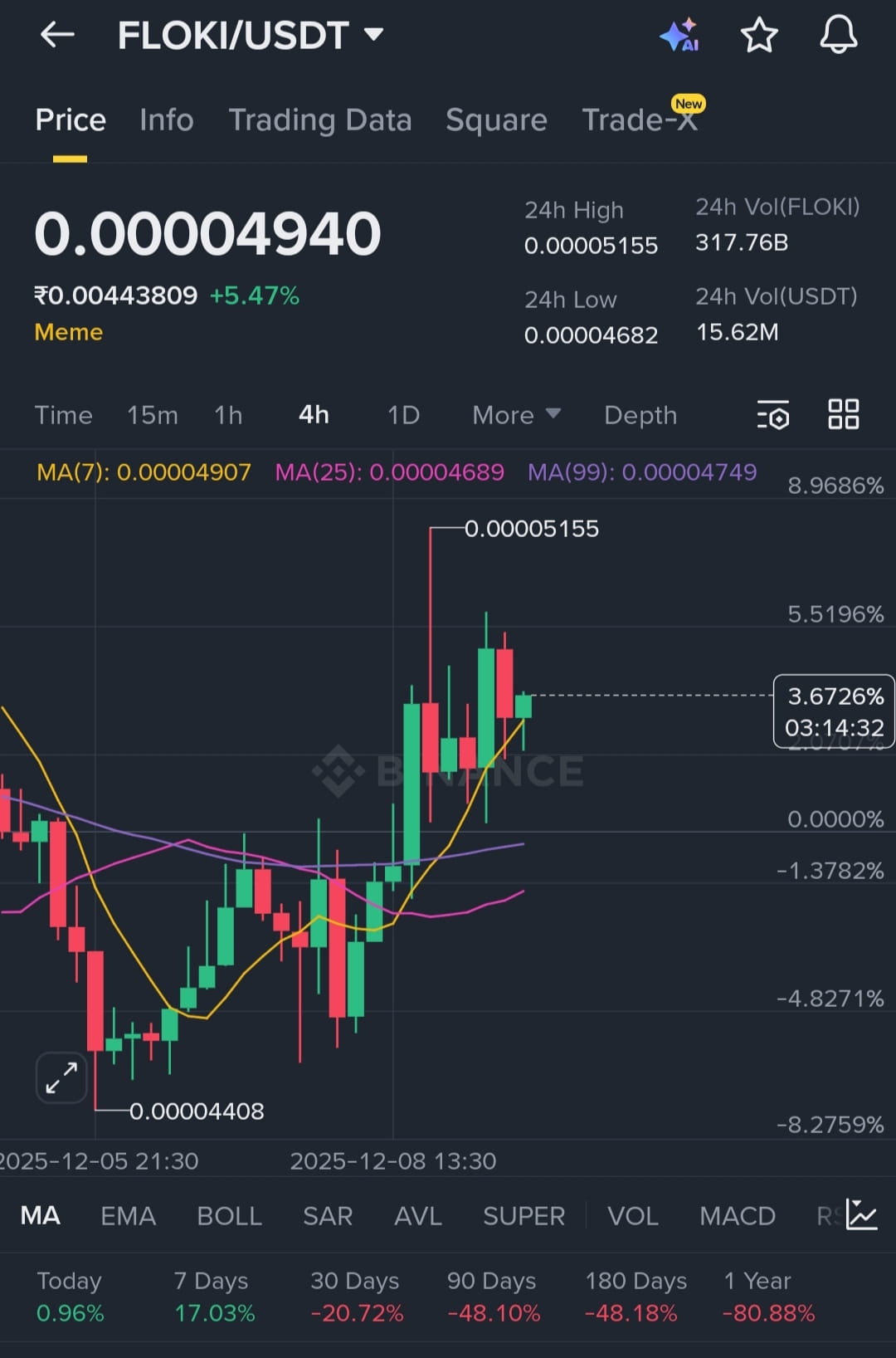$FLOKE is currently in an upward trend, with community buzz and liquidity driving its price higher. The meme-driven energy, high engagement, and active social media discussion are fueling interest.