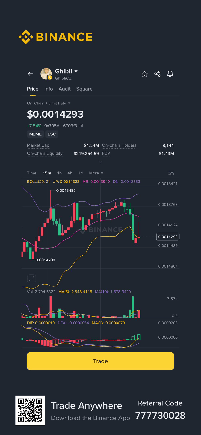 $Ghibli saw strong price action, rising 7.54% to trade at $0.0014293.