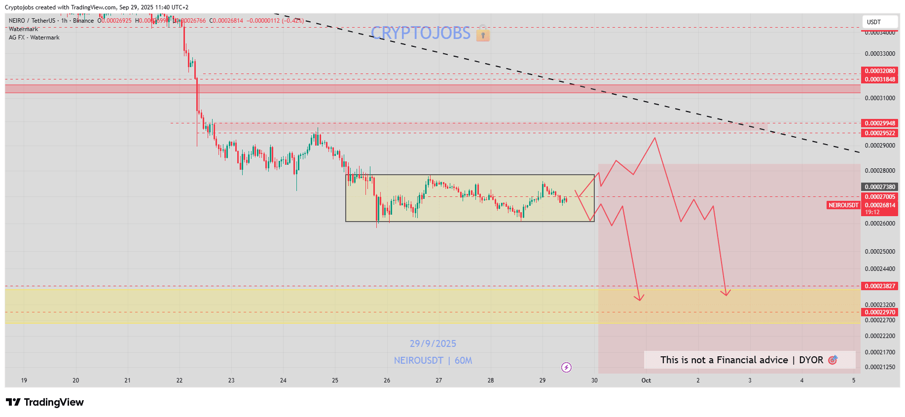 $NEIRO - [1H19 Outlook]: Neutral territory, bearish consolidation and trend continuation possible 📉 #NEIRO #Altcoin #meme