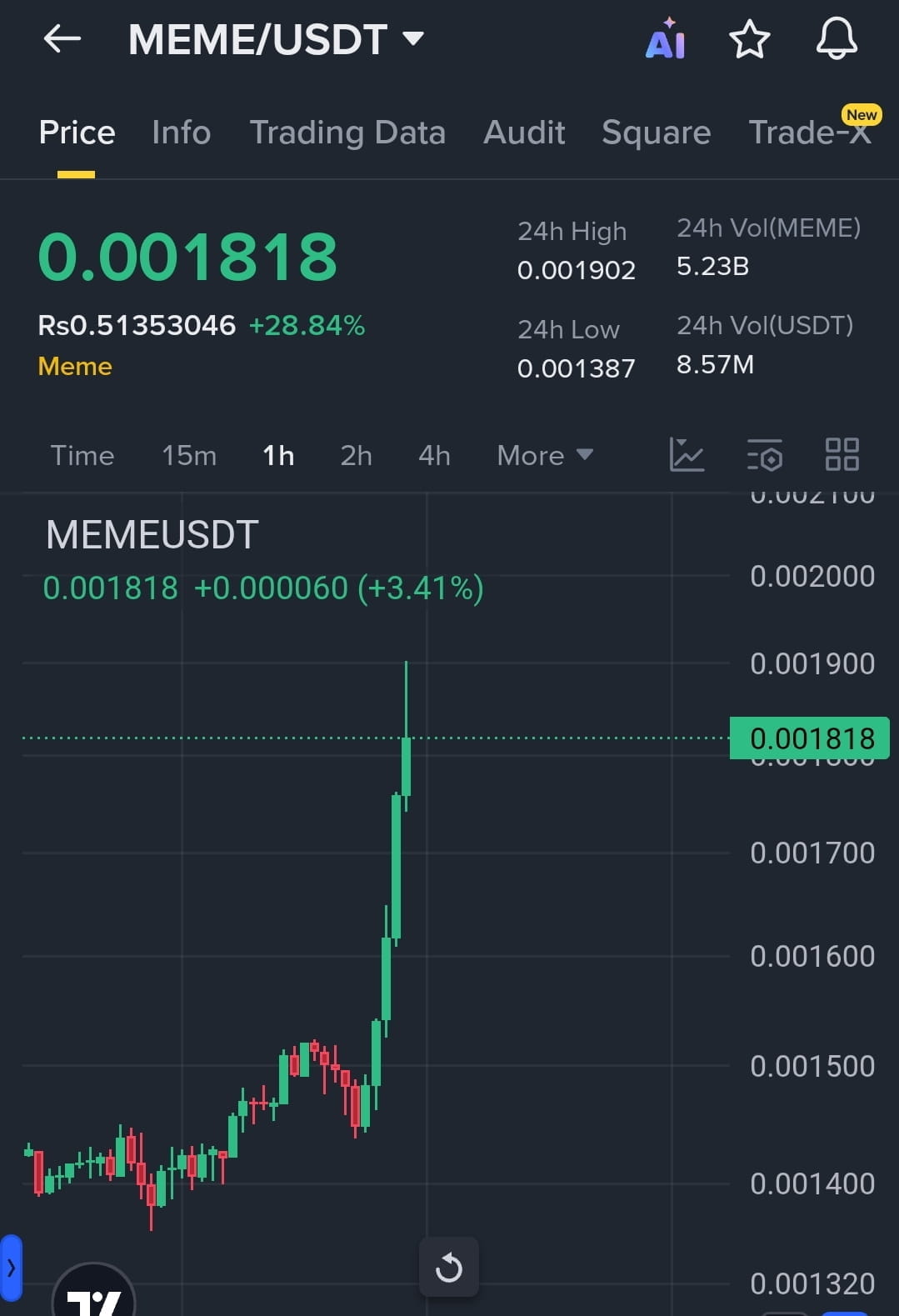 $MEME price has risen nearly 29%, with strong meme momentum re-emerging. If the bulls can hold above 0.0018, short-term traders may see a new round of gains, with a target price of 0.0020.