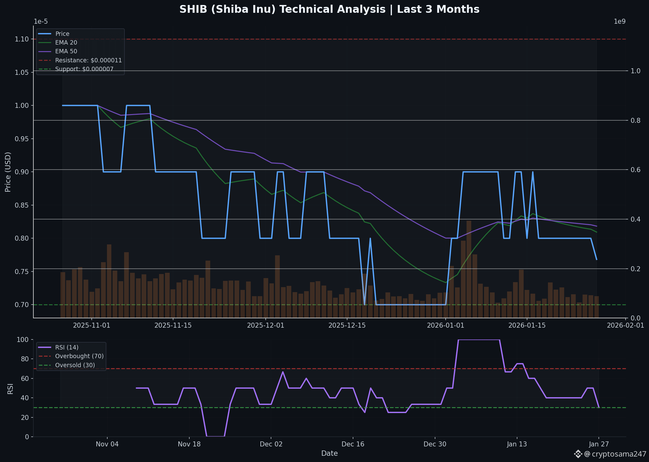 Resistance: $0.000011 (Previous Consolidation Range)
