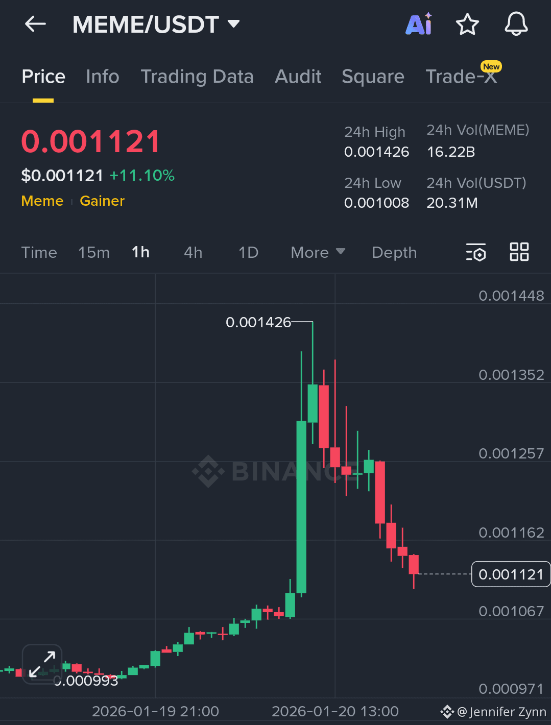 ⚠️ Warning: This setting is invalid if the MEME price closes below 0.001008 after 1 hour and fails to regain that level (breaks a new low).