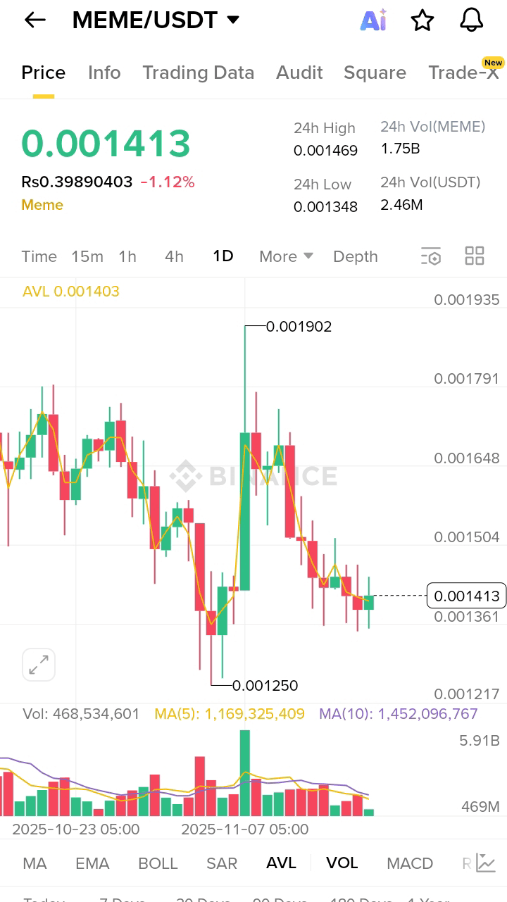 $MEME {spot}(MEMEUSDT) 在触及 24 小时高点 0.001469 后,目前交易价格为 0.001413 🚀 图表显示,价格从 0.001348 的低点强劲反弹,买家试图重拾动能,但每次上涨都遭遇阻力 📉 目前价格在 0.001413 附近企稳,小幅绿色蜡烛图表明缓慢积累 🔄 成交量依然活跃,如果买家守住该区域,MEME 可能会再次尝试冲击近期高点 📈 #MEME #山寨币 #加密货币动态 #市场观察