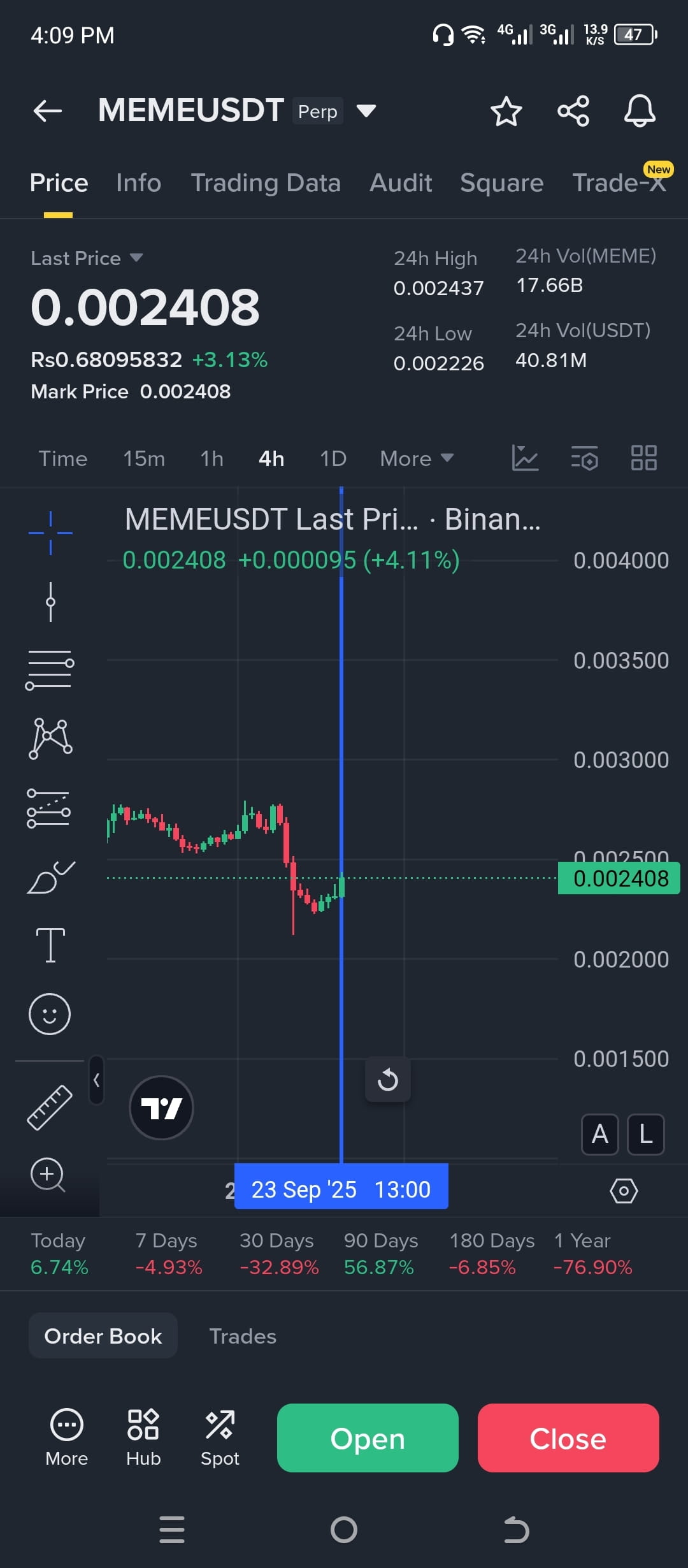 $MEME is slowly climbing higher after a sharp drop, showing early signs of a bullish reversal as buyers hold support.