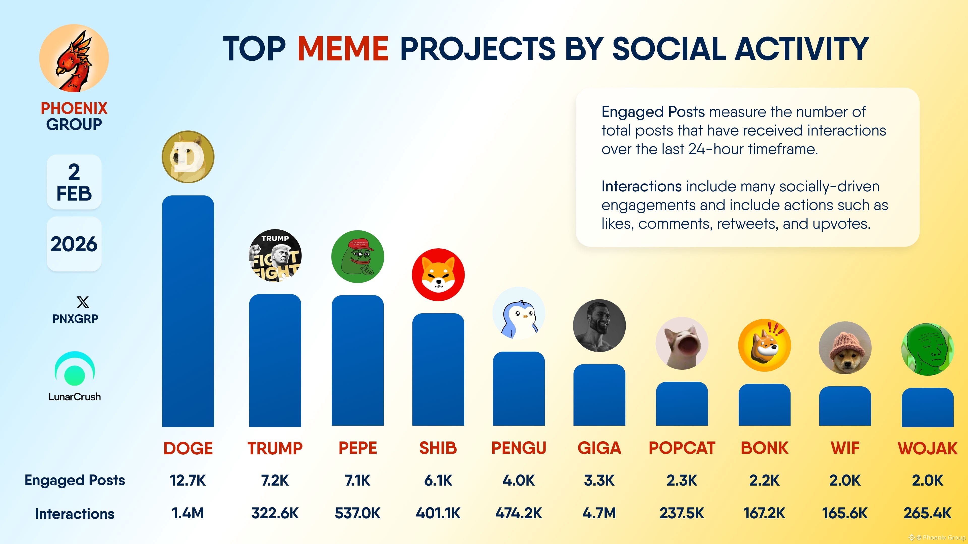 The most active and popular #MEME projects on social media: $DOGE $TRUMP $PEPE $SHIB $PENGU $GIGA $POPCAT $BONK $WIF $WOJAK
