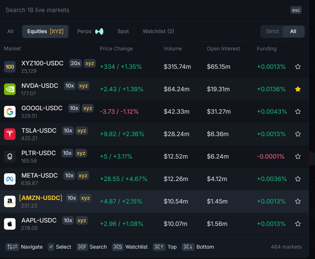 链上股票会成为一个新的热门赛道 hyperliquid会成为这个行业的头部 这可能是第一个DEX遥遥领先cex的赛道 目前币安、CB、UP,还没有上线股票合约 hyperliquid上由trade提供支撑的链上股票合约 才正式上线半个月已经遥遥领先其他CEX 无论是交易量,深度,还是持仓数据都遥遥领先