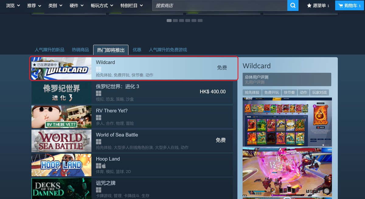 Also, today I saw the Wildcard banner on the Steam homepage again, appearing in a carousel. (See image)