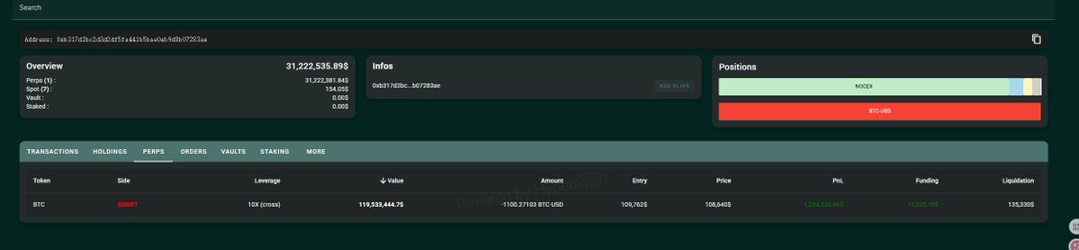 He's now doubled his bet, using $120 million to open a 10x short position on BTC at 109,700, doubling the size of yesterday's. However, this position isn't as large as his previous positions, only about 15%-20% of his previous size. He's probably just testing the market's limits.