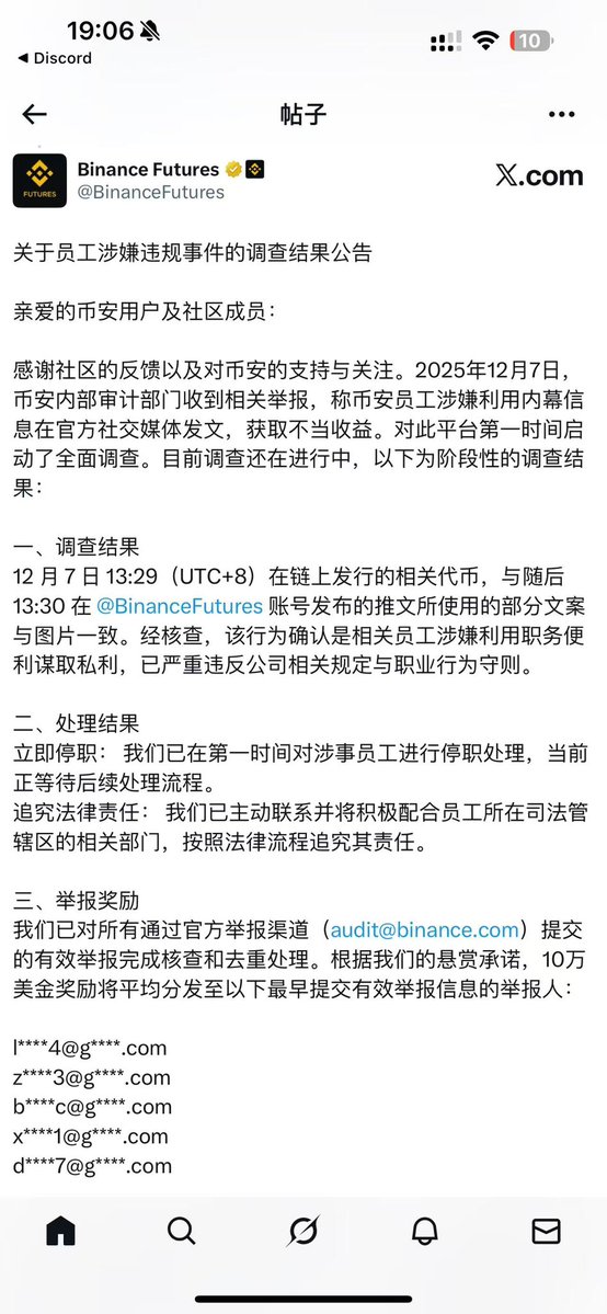 币安处理结果出来了 本来跌了的币又起来了 我就不去凑热闹了 因为meme效果和真处理还是有区别的 可是,为啥我没第一时间去提交举报线索呢? 又少赚几万u
