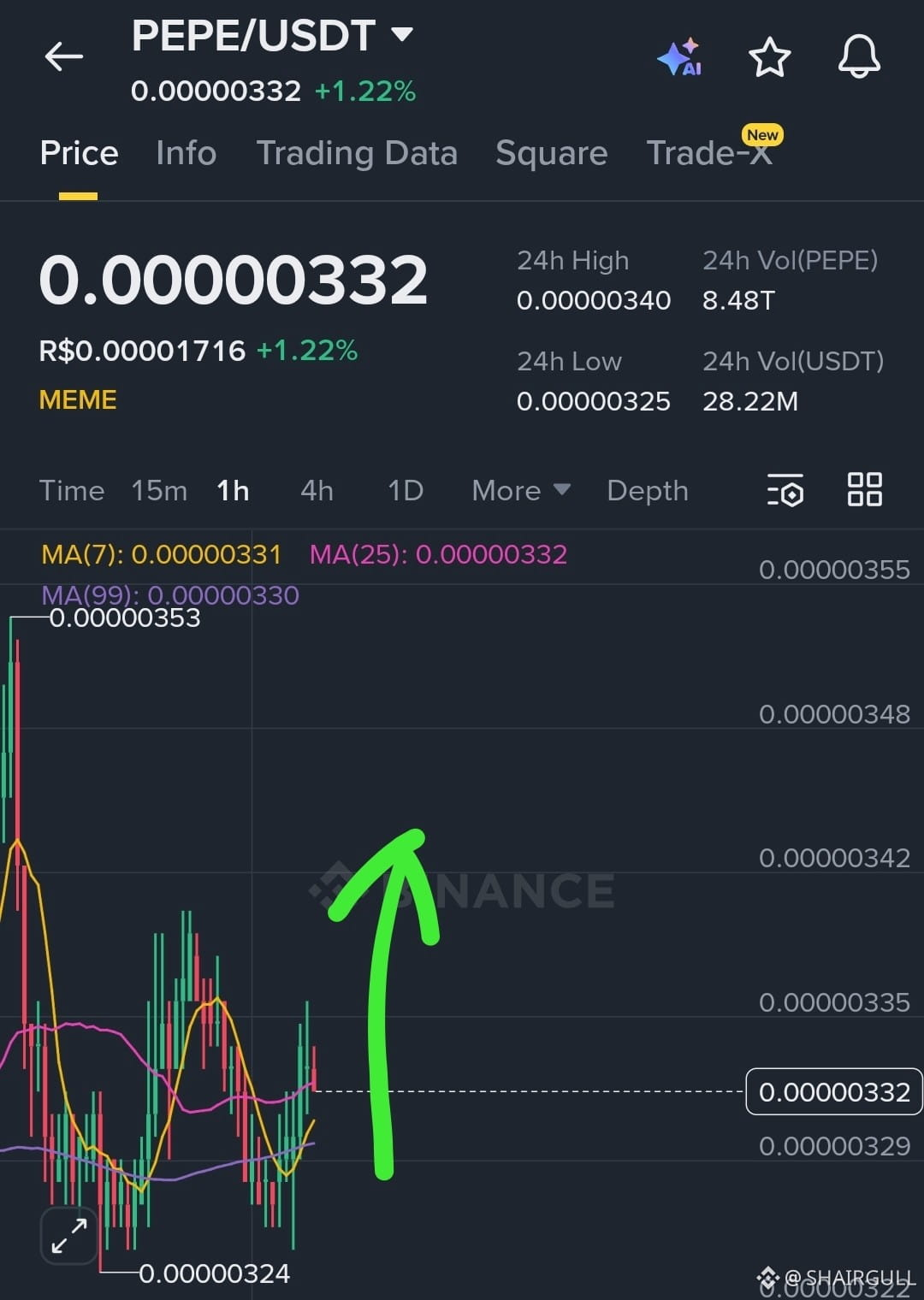 The price has remained stable above the 99-day moving average support level of 0.00000330, currently trading at 0.00000332. The 7-day and 25-day moving averages are flattening out, and trading volume is also stabilizing, which is usually a signal of accumulation.