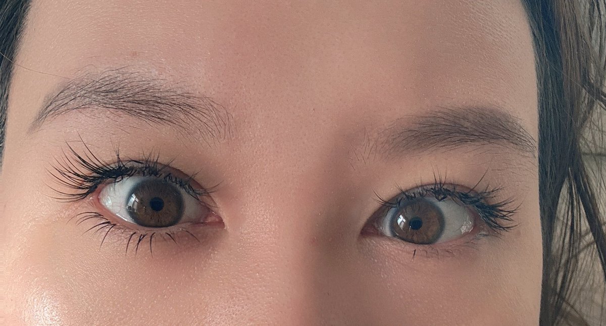 Guys, I'm in trouble again. I got my eyelashes done a few days ago, and now one lower eyelash hasn't fallen out at all, but the other eyelash is almost completely gone. Will I get laughed at if I go out to eat like this? 😭