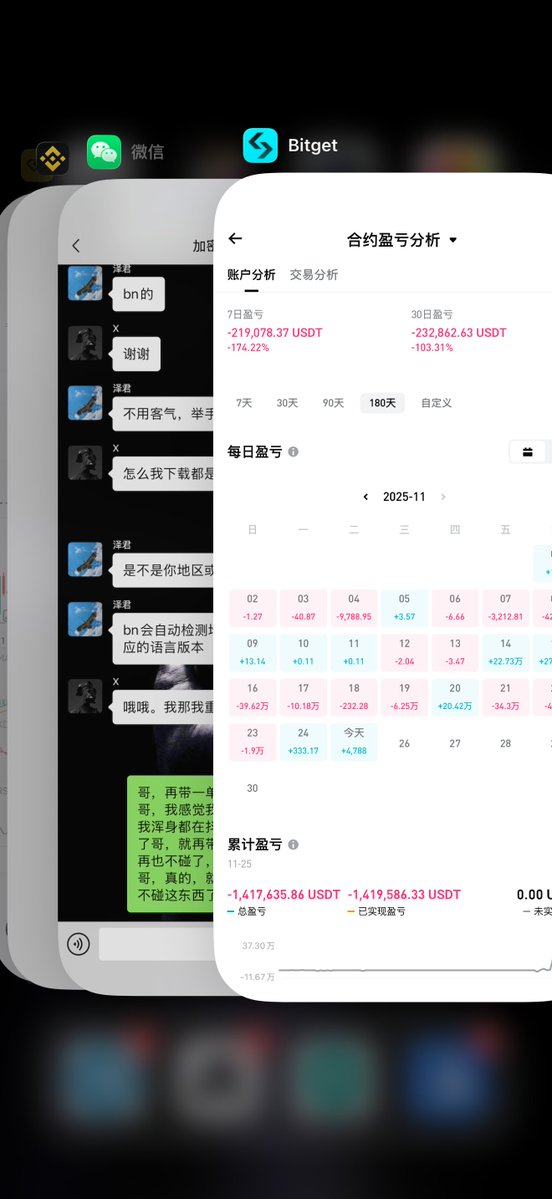 一位小伙伴,今年9月私信我验资入群时,合约已经亏了 782 万人民币。 昨天在群里说,他的累计亏损已经来到 141 万美金。 看来合约的尽头,不是财富自由,而是亏钱。 能在合约里长期赚钱的,永远只有极少数顶尖交易员(比如魏神@coolish)。 而绝大多数人——只是这个行业的燃料😂
