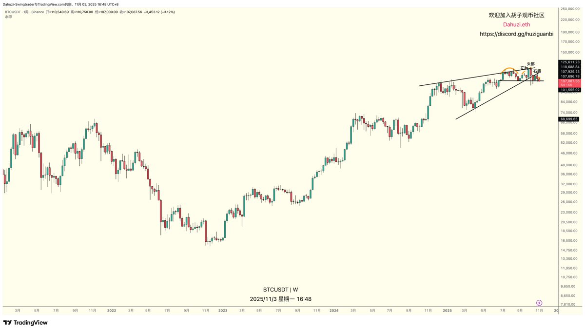 D1, BTC, M-top + H&S + H&S, 118 bars, 20251103