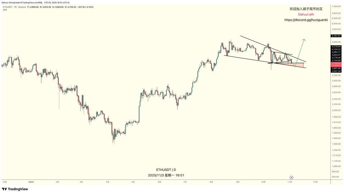 The daily chart structure shows a pattern of lower lows on each bounce. If the weekly chart breaks below this level this week, forming a double-structure resonance, a wedge + rectangle breakout, the market will likely be weak and downward.