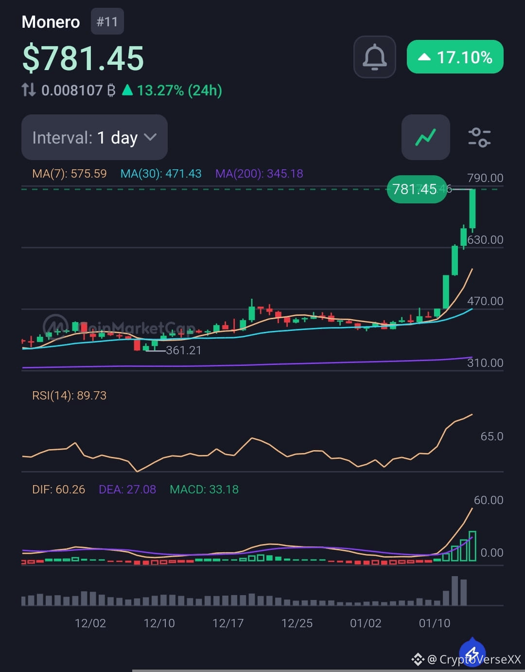 Monero has broken through key resistance levels at $470 and $630, confirming a strong upward breakout.