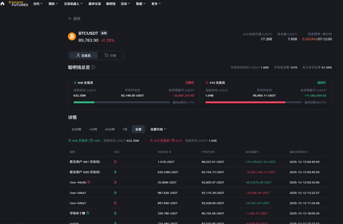 币安聪明钱这个功能还挺好的,可以按照单币种合约中的交易员或者巨鲸的当前持仓盈亏情况 比如这个btc大户空单目前持有1b仓位浮盈七千多万美金 #binance #币安聪明钱 @cz_binance @heyibinance @cz_binance @heyibinance @sisibinance @yayabinance @0xDaTang @yingbinance app的聪明钱应该也能访问