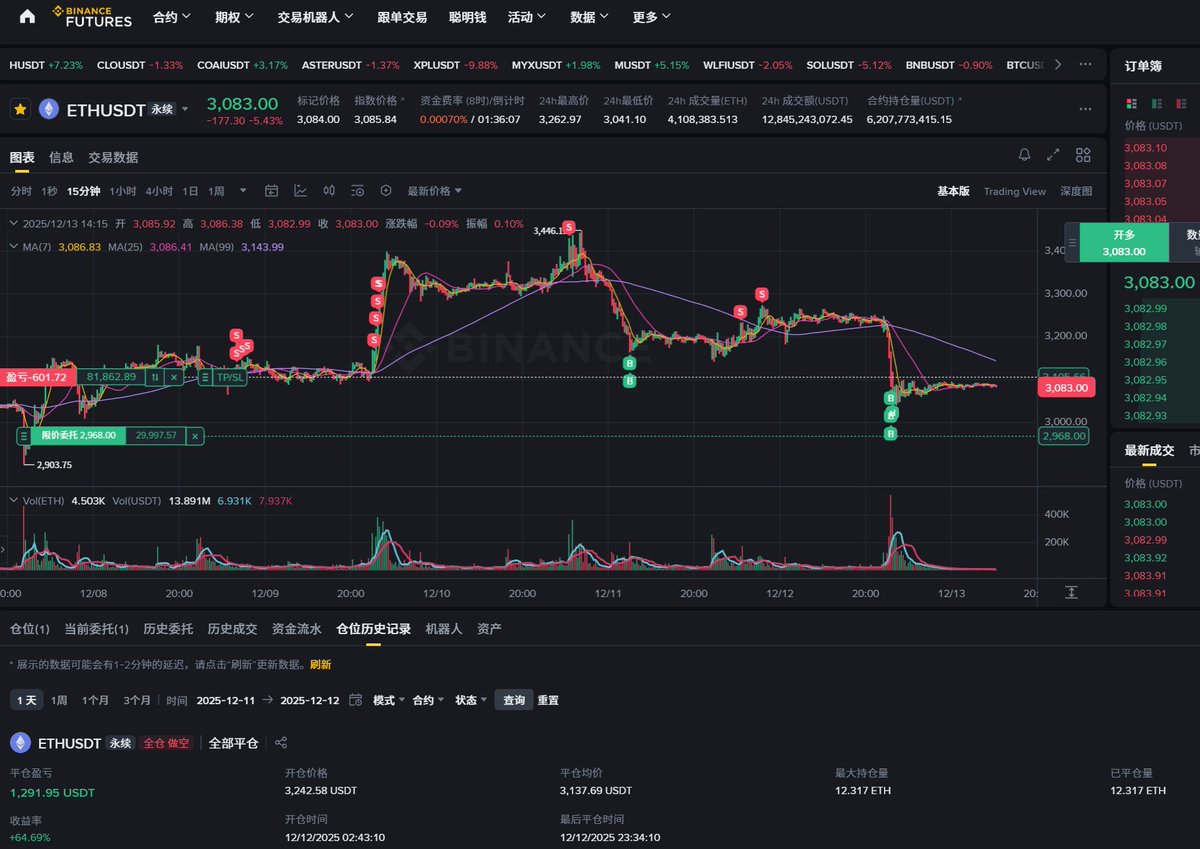 我要准备开始接回来现货了,同时开始设置双币赢 这次我要拿回失去的 3065接了10w刀现货eth