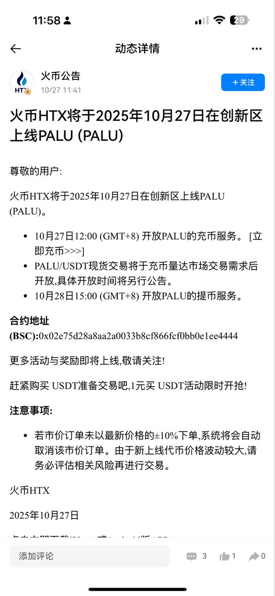 我说 #Palu 这两天走势这么好 原来是要上线火币了 币安的吉祥物被火币上了 下一个上palu的会是谁
