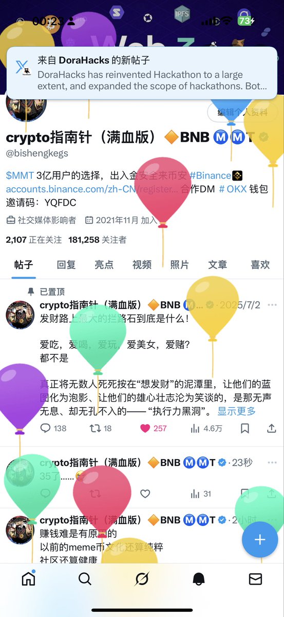 赚钱难是有原因的 以前的meme币文化还算纯粹 社区还算健康 现在战争用来发币,色情用来发币 名人放个屁都能用来发币 没了文化,没了灵魂,没了信仰 只剩下热点和纯粹的博弈 钱会越来越难挣,市场会越来越卷,不优化策略提高认知 下一轮你可能不是坐在桌子上,而是躺在板子上了