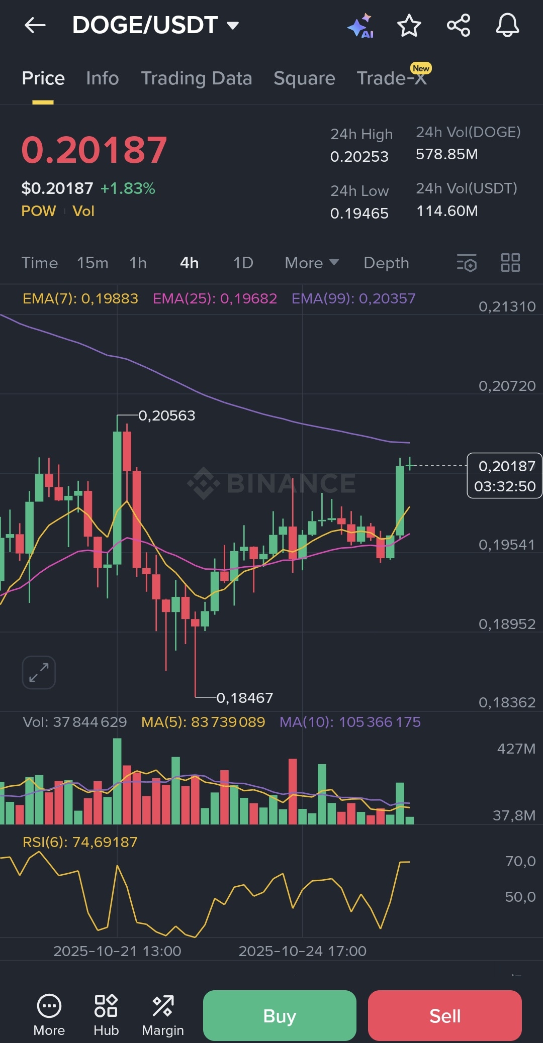 All eyes are on the crucial $0.20 mark. If Dogecoin can break through this level and turn it into solid support, it could signal a trend reversal and set the stage for a move towards $0.25. Currently, Dogecoin is forming a symmetrical triangle pattern. If the candlestick closes above the upper trendline, we could see a bullish breakout with a target near $0.246, which would represent a nearly 25% gain.
