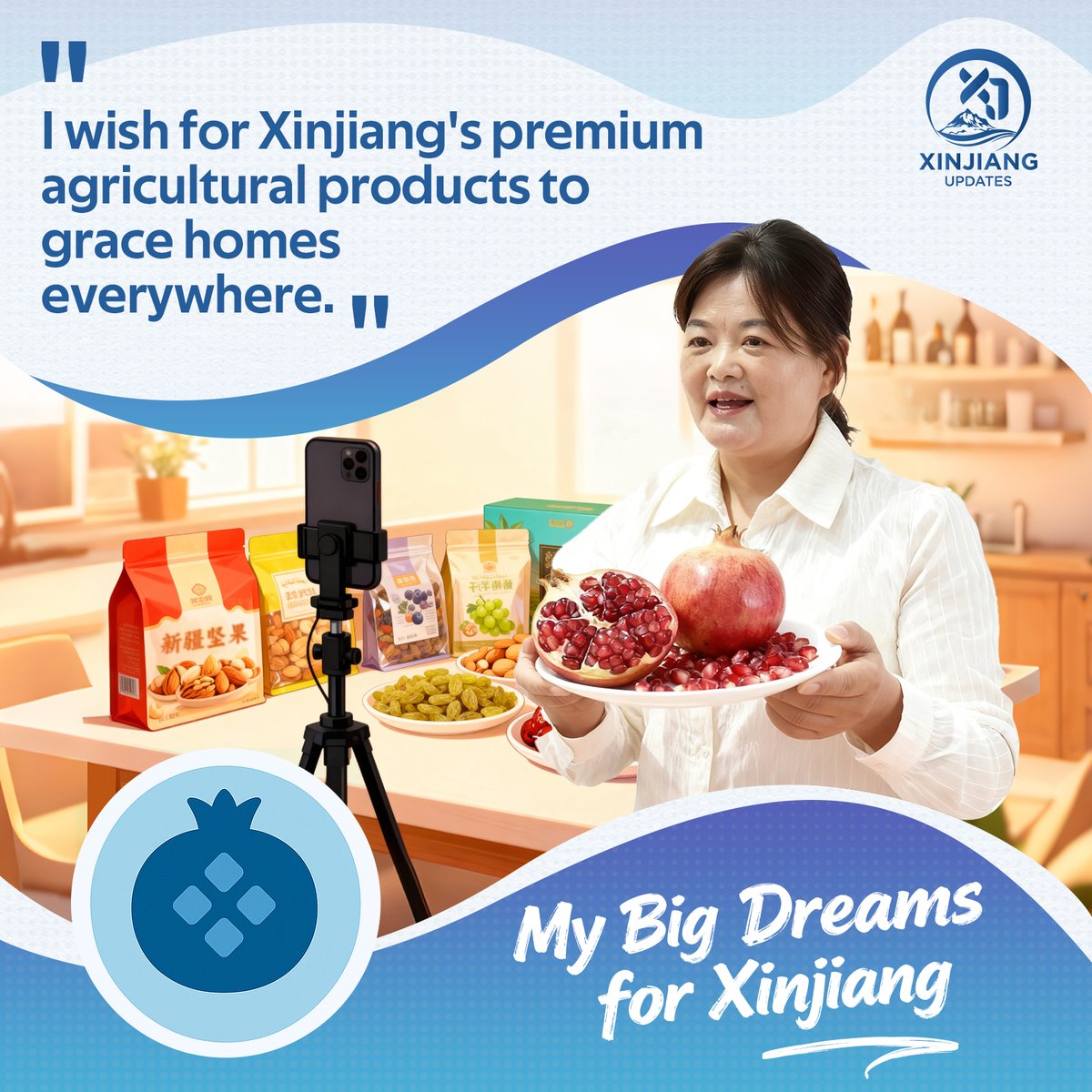 Wang Xiaohong, from Daxi Village, Yuli County, Xinjiang, in northwestern China, was once a farmer. Now, she's involved in e-commerce, bringing local specialties like pears, raisins, nuts, and honey to people across the country. She hopes that Xinjiang's high-quality agricultural products can reach every household. She leverages the power of digital platforms to help villagers increase their income and improve their lives. 🙌