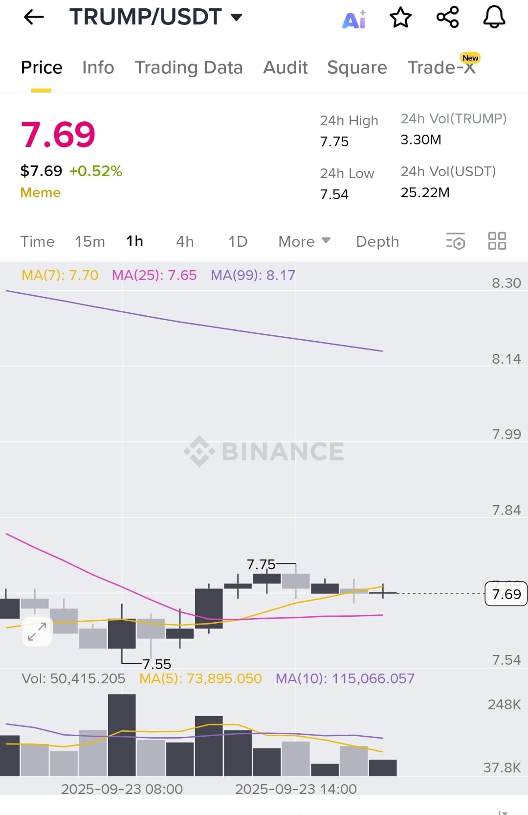 ⚡ $TRUMP BREAKS! $7.69 (+0.52%) - Trading above all key moving averages! 25 million in volume - Meme momentum is building! 🎯 Resistance: $7.75 Next target: $7.84 and above The King of Memes Awakens! 👑 #TRUMP #USDT #MEME #Trading #Crypto $TRUMP {future}(TRUMPUSDT)