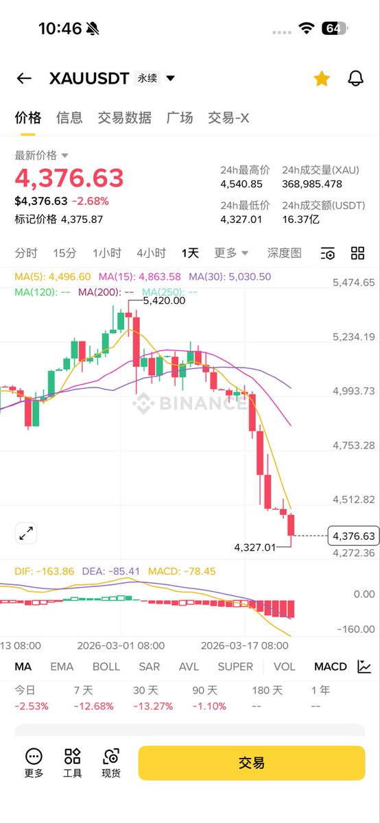 Gold continues its sharp decline; this is not a good sign. Gold doesn't fall only when a crisis occurs; it has "peaked ahead of time."