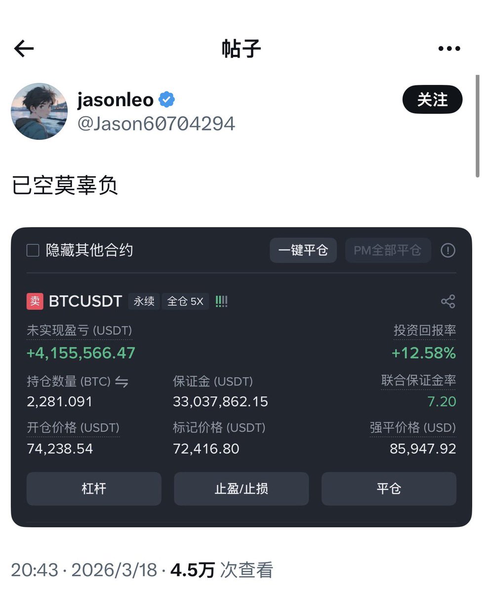 这哥们真猛,昨天才平仓赚1亿,今天又赚几千万,当欢乐豆玩的。