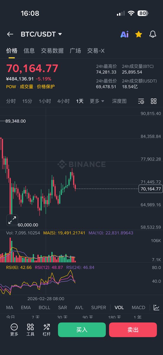 黄金在跌,号称数字黄金的比特币也在跌。 又是麻了的一天。