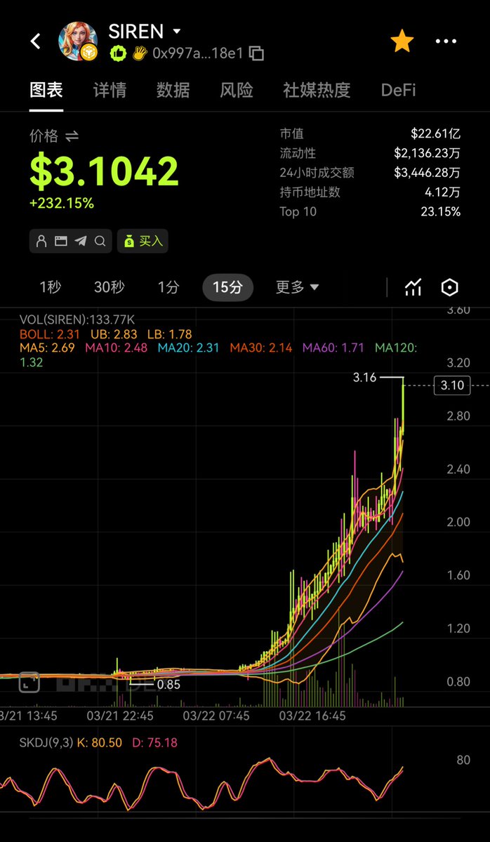 现在Siren 22亿市值 22亿市值什么概念,当初Brc20满天飞,全网fomo的时候,ordi才20亿市值