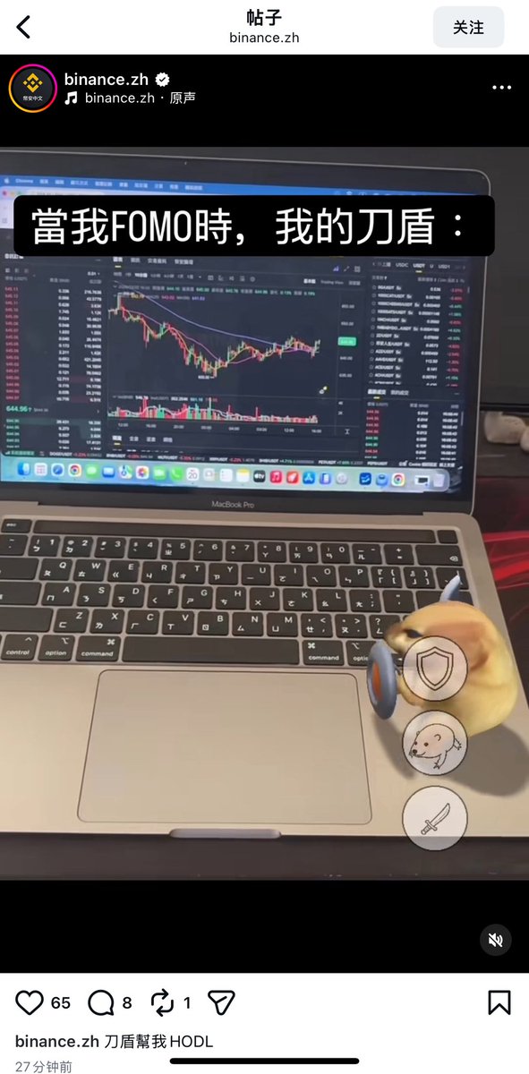 Binance Chinese just posted a "My Knife & Shield" meme video on Instagram. Bitmart also posted a reaction video of the same knife and shield yesterday, and CT is increasingly noticing the knife and shield hashtag #WTDD