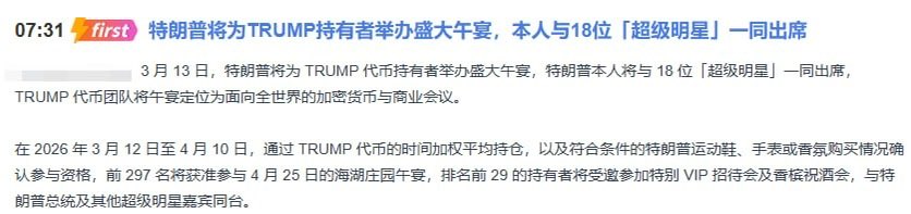 Trump 给大家送钱了!应该怎么操作呢? - 3.12~4.10:这段时间是出货的,所以会维持币价 - 4.28:邀请吃午餐,所以这个时间点就是砸盘的时间点了,逻辑上是 4.10 左右,所以这个时间点可以做空,但是为了防止大盘的波动,再找一个类似的标的做多,比如 Doge,这样不管大盘涨跌都是赚的 当然赚个猪脚饭,控制仓位,小仓位参与