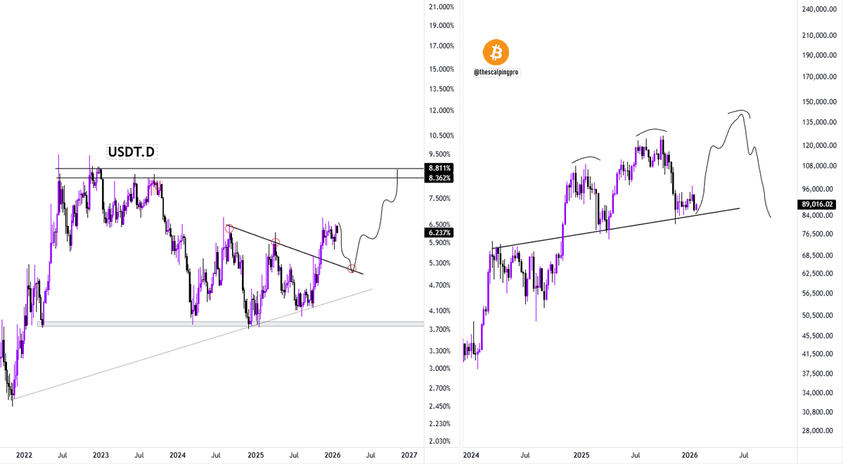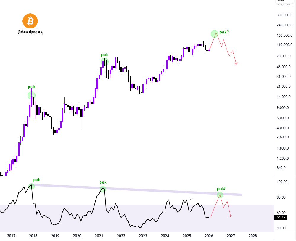 If the price breaks below the middle line, it could trigger a significant pullback and signal the arrival of a bear market; conversely, if it successfully holds above the middle line, it could lead to a strong upward trend.