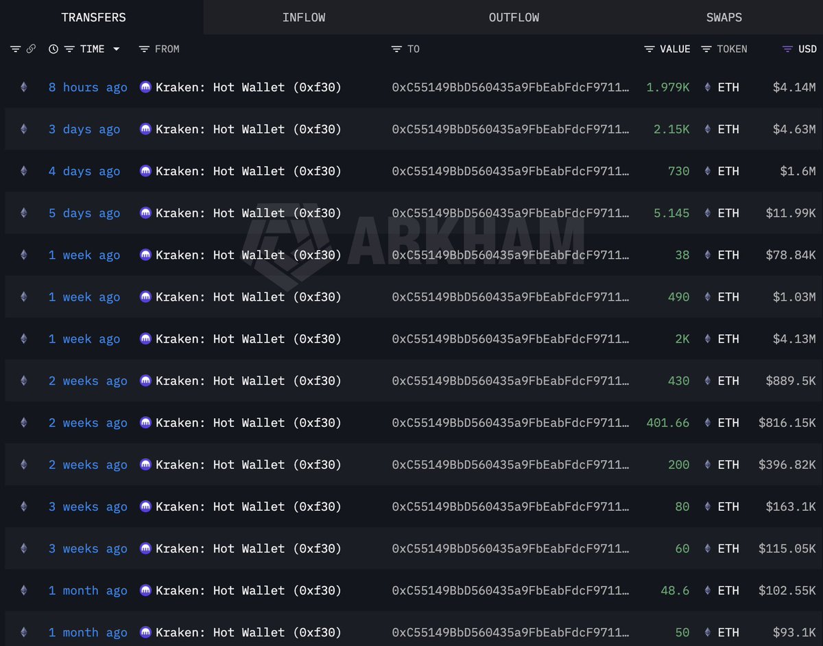 A whale holding over 130,000 ETH (worth $268 million) recently sold 5,000 ETH (worth $10.31 million) at $2,063 per share, and paid off some of its debt.