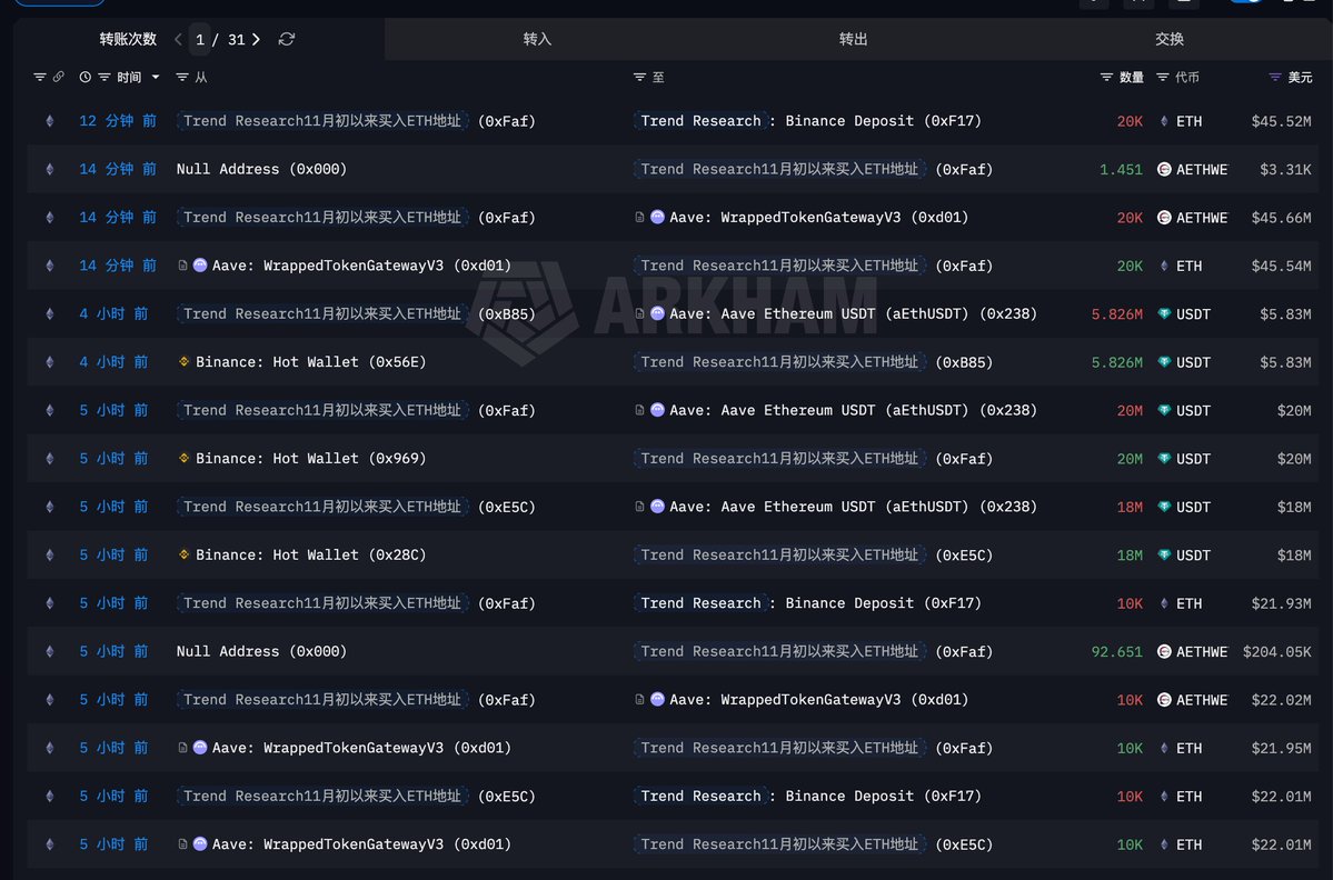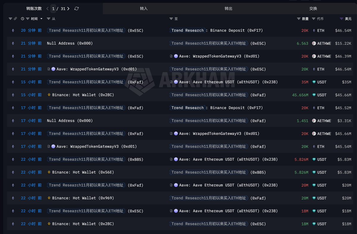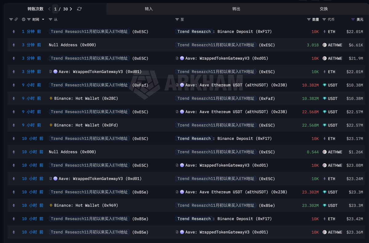From the afternoon of the 1st until now, over two days, Trend Research has cumulatively reduced its holdings by 153,500 ETH ($352 million) at an average price of $2,294, and then repaid 266 million USDT to reduce leverage.