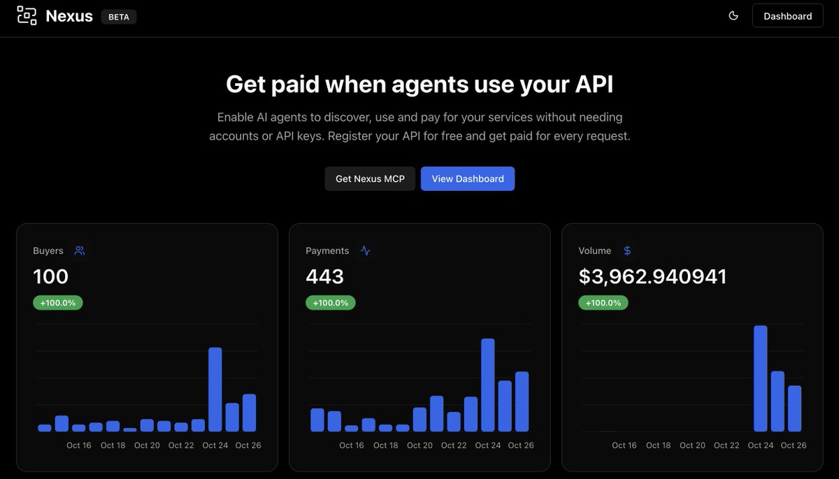 Nexus 是使用 x402 启用 API 的最简单方法,它内置了 LLM、代理和人工的发现功能。