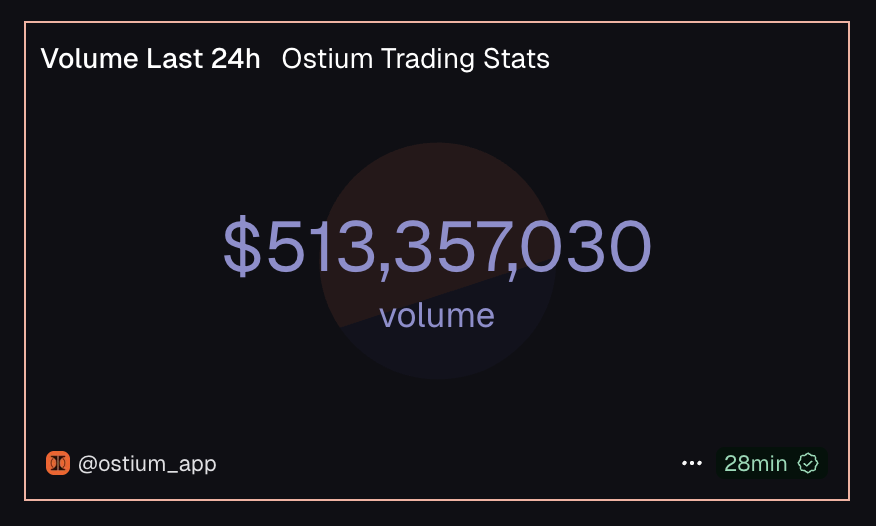 - @OstiumLabs hits a new high of $568M in daily volume on its first anniversary (bullish on Perps perpetual contracts)