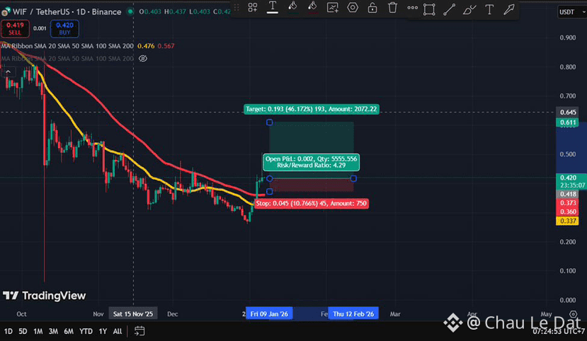 Long WIF. Entry: Now. Stop Loss: $0,373 TP: 2R. Fireblock Capital is now live, and the song "fomo meme" is playing in WIF. Win 75%. #TradingCommunity #meme