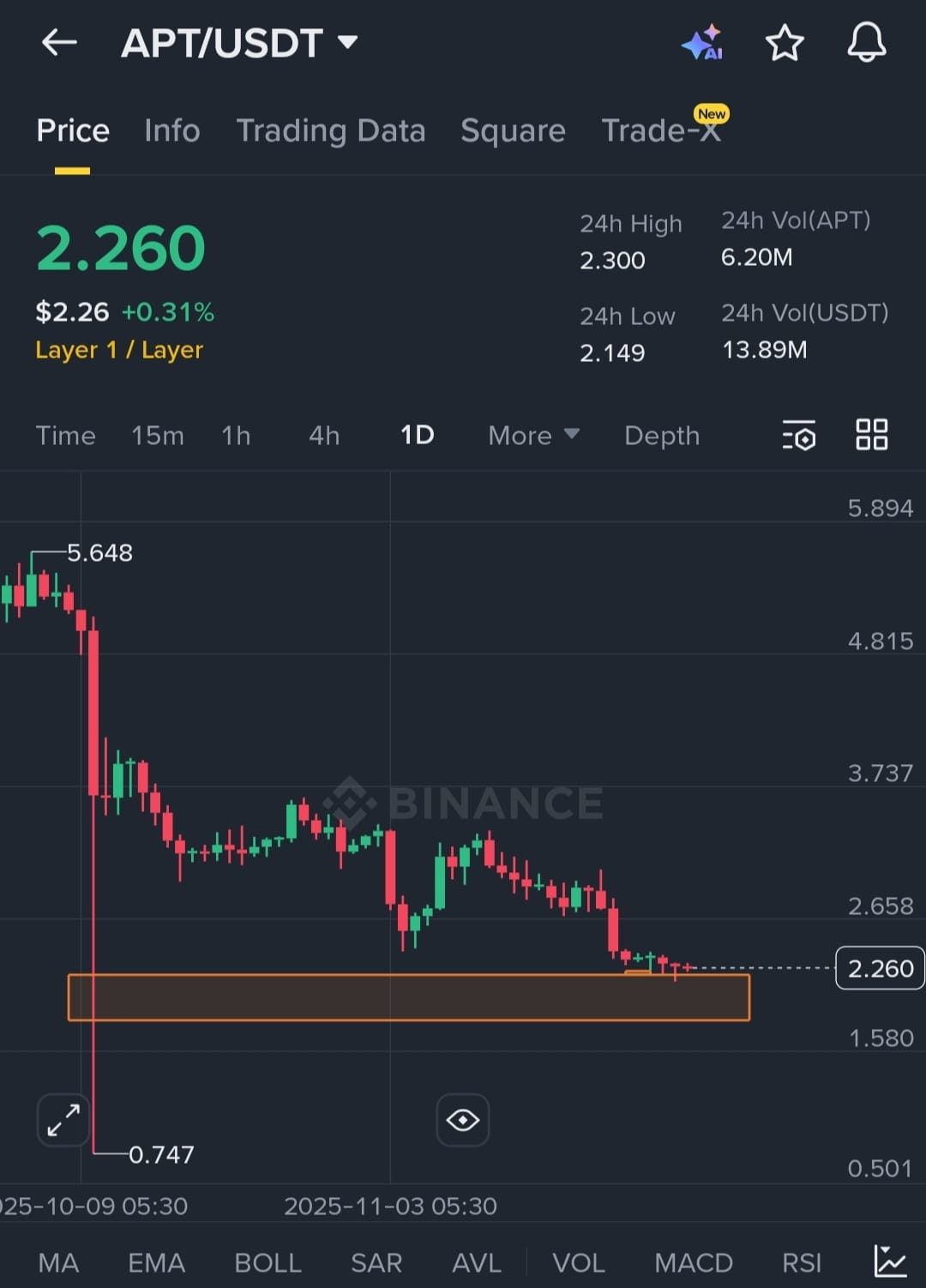 整个市场都在上涨,而APT仍然处于一个非常强劲的支撑区域👀📉