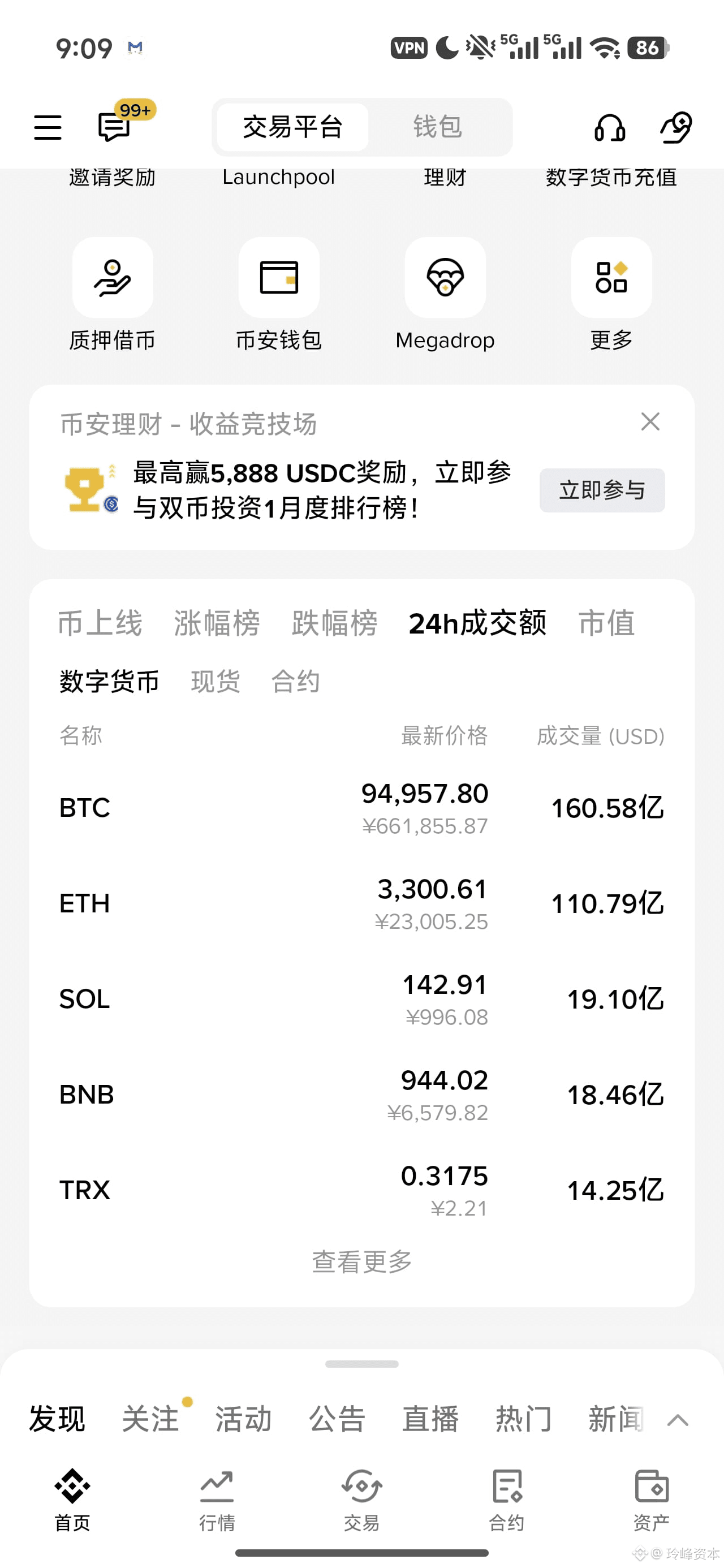A chart illustrates the bear market: Bitcoin's trading volume on Binance yesterday was very low, equivalent to a peak of around 100 billion. It's now down to about 20%. Trading volumes on DEX and CEX have also shrunk. Bitcoin is expected to consolidate for another 1-3 months before initiating a 3-month-long crash.