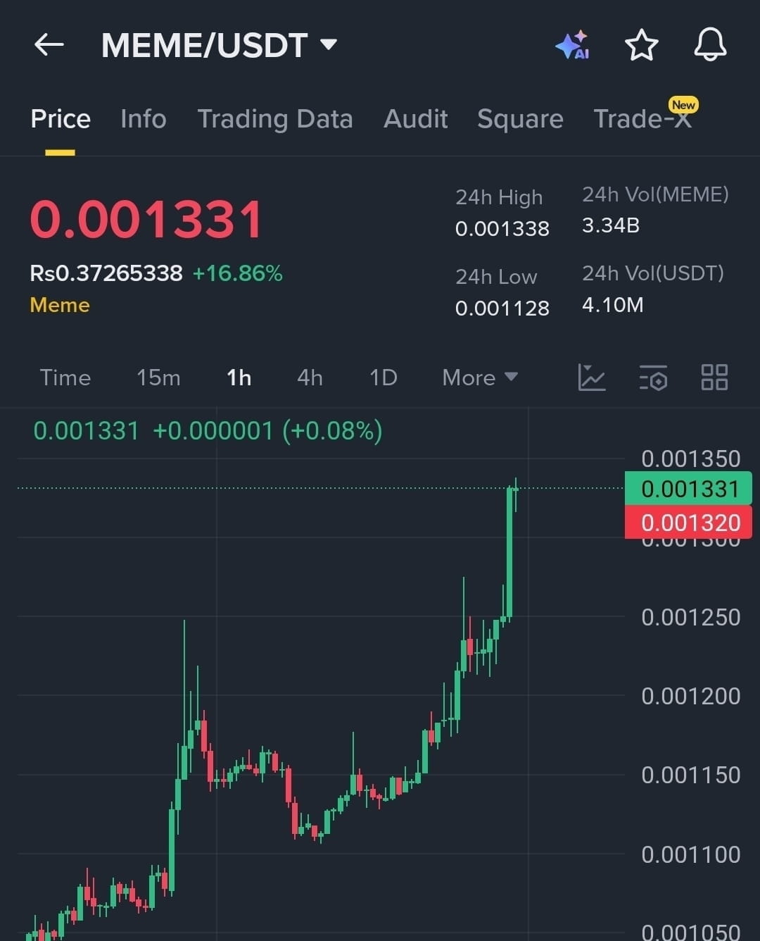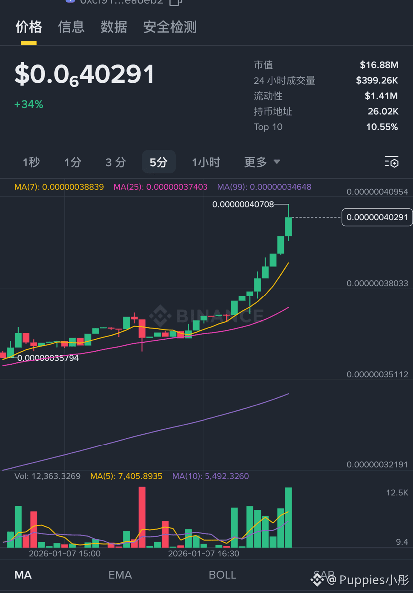 Around 5 PM, Pushies continued its upward climb from the morning's positive candle, now just over 0.0000040, a 34% increase.