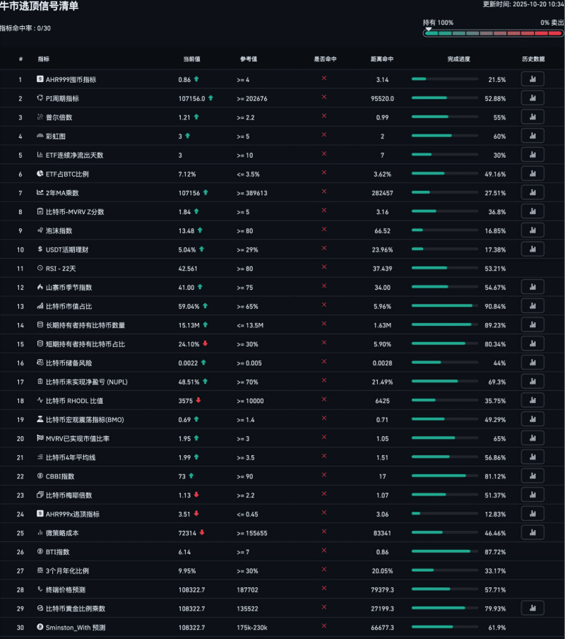 2️⃣ None of the 30 market exit indicators have triggered yet.