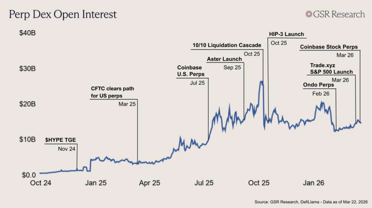 Perp DEX's open interest surged from around $1 to over $15 billion in just 12 months.