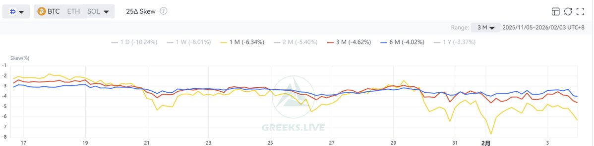 Looking at the main options data, the implied volatility of BTC and ETH has increased significantly. The implied volatility of BTC's main term options is around 45%, and that of ETH's main term options is around 60%, both at their highest levels this year.