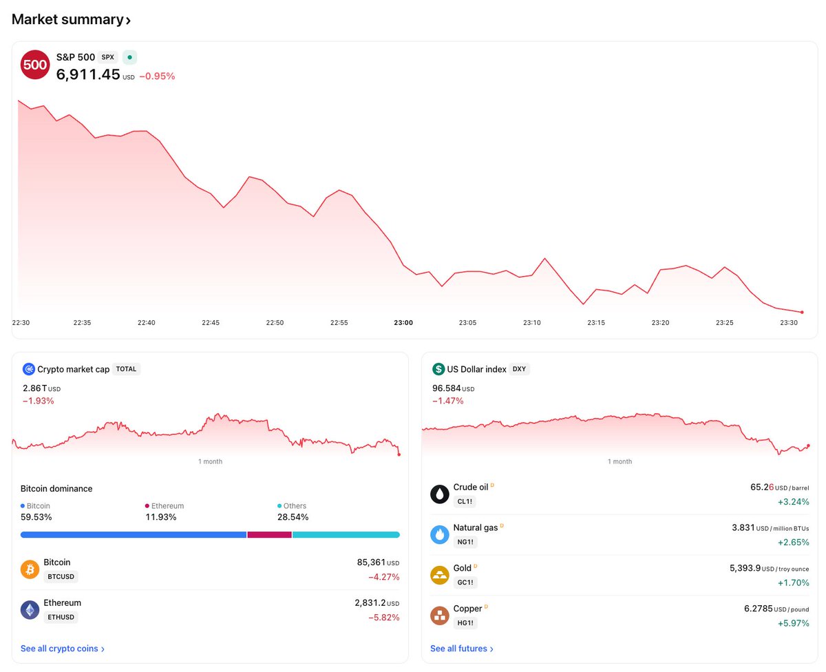 航母开进区块链了🥲 好消息是,这次不是只有币圈买单:美股 / 贵金属 / 加密资产集体跳水