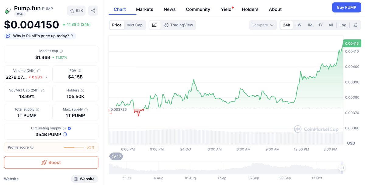 $PUMP 价格上涨 7.3%(24 小时)!