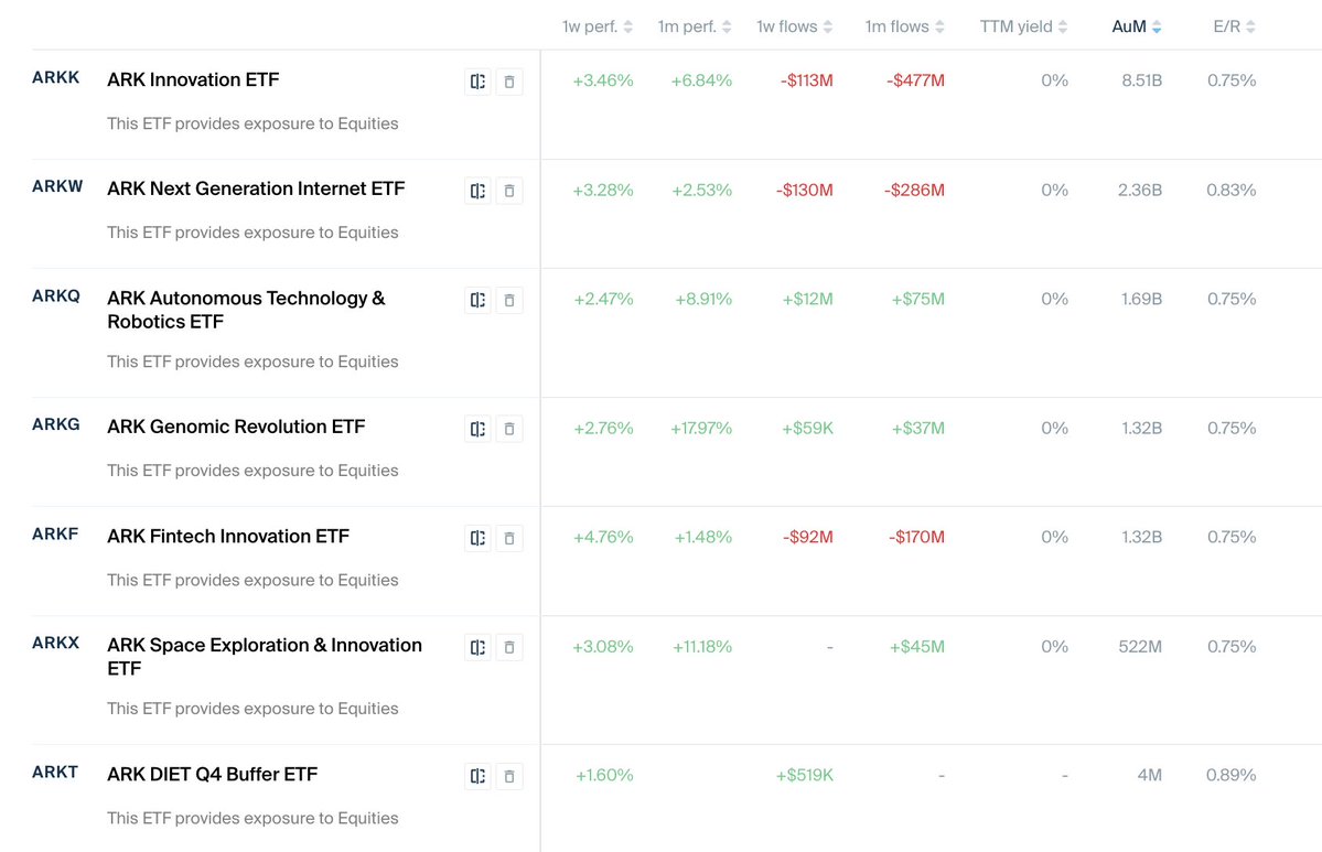 以下是 Cathie Wood 的 ARK ETF 本周的走势