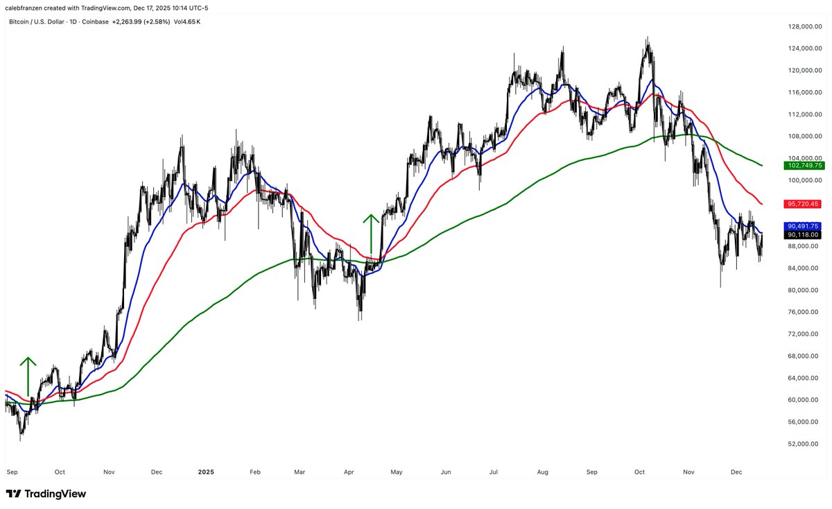 Bitcoin bulls are cheering, but Bitcoin's price is still trading below its 21-day moving average.